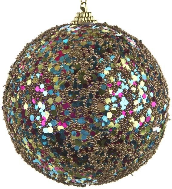 Pięknie mieniąca się bombka choinkowa to wyjątkowa ozdoba, która łączy w sobie elegancję i blask świąt. Pokryta drobnymi cekinami oraz złotymi perełkami, zachwyca bogatą fakturą i wspaniale odbija światło choinkowych lampek. To doskonała dekoracja świątecznego drzewka, ale równie dobrze sprawdzi się jako ozdoba innych miejsc w domu. Można ją zawiesić w oknie, na girlandzie, wieńcu lub wykorzystać w świątecznych kompozycjach – stroikach, bukietach czy dekoracjach stołu. Bombka pięknie komponuje się z innymi bożonarodzeniowymi dodatkami, tworząc efektowny, ciepły klimat pełen blasku i elegancji. To detal, który podkreśli wyjątkowy charakter świąt i wprowadzi do wnętrza odrobinę magicznego uroku. Ozdoba dostępna jest również w innych wariantach – skompletuj je wszystkie i stwórz spójną, olśniewającą aranżację, która zachwyci Twoich bliskich. Cena dotyczy kompletu 2 sztuk. Zdjęcie aranżacyjne ma charakter poglądowy. Prezentowana aranżacja może zawierać elementy dekoracyjne niewchodzące w skład zestawu. Szczegóły dotyczące zawartości znajdują się w opisie produktu.