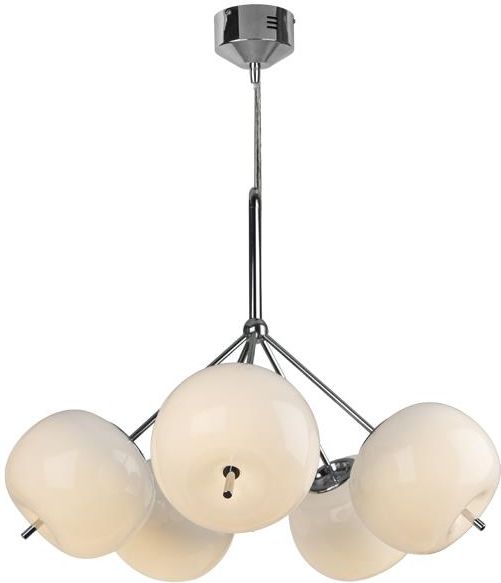 Fascynująca lampa wisząca z pięcioma kloszami w kształcie jabłka. Wykonana została z dbałością o szczegóły. Uroku dodają jej ogonki w kolorze srebra wydobywające się z każdego klosza. Dane techniczne: Rodzaj: LED Moc: 5x6W Barwa: 3000K Materiał: metal, szkło Kolor: biały, srebrny Wymiary …