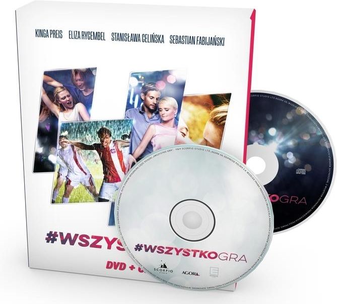 #WszystkoGra to historia o poszukiwaniu szczęścia, miłościi radości życia. Zosia (Eliza Rycembel) próbuje zmienić świat zapomocą sztuki. Jej mama (Kinga Preis) niespodziewanie spotykana swojej drodze kogoś wyjątkowego. Babcia (Stanisława Celińska)ukrywa tajemnice z przeszłości.Trzy kobiety spróbują ocalić rodzinny dom. Przeżyją niejednąprzygodę, by przekonać się, czego pragną. Czy uda im się to zdobyć? Wszystko to w rytmie najpiękniejszych polskich piosenek w zupełnienowych aranżacjach. Niezapomniane melodie i doskonałe tekstynajlepszych autorów — od Agnieszki Osieckiej i Jonasza Kofty przezMaanam po T.Love. Czas trwania: 91 minut Język: polski Napisy: angielskie, dla niesłyszących Dźwięk: Dolby Digital 5.1 Format obrazu: 16:9 ISBN: 978-83-268-2456-2 Wydawca: Agora, Edipresse Data premiery: 30 września 2016 Książka o filmie: 28 stron Przeszli wyczerpujący i trudny „maraton treningowy”, podczas którego uczyli się śpiewania w parach, oddawania emocji, analizy utworów. Wysiłek ekipy się opłacił – na ekranie widzimy brawurowo roztańczonych aktorów i słyszymy porywające wersje przebojów, od których nie można się uwolnić długo po wyjściu z kina. Każda piosenka to perła polskiej muzyki… "Nie dokazuj" Marka Grechuty z muzyką Jana Kantego Pawluśkiewicza, niezapomniany "Jej portret" Bogusława Meca z tekstem Jonasza Kofty, a także nowsze przeboje, jak "Warszawa" zespołu T.Love, "Szare miraże" Maanamu z 1980 roku i "Ale w koło jest wesoło" ze słynnej debiutanckiej płyty Perfectu to tylko niektóre wielkie przeboje zawarte na płycie. Lista utworów: 1. WARSZAWA Eliza Rycembel, Karolina Czarnecka, Irena Melcer 2. RADOŚĆ O PORANKU Kinga Preis, Eliza Rycembel 3. MOJE SERCE PEŁNE CIEBIE Bartosz Żuchowski 4. SZARE MIRAŻE Eliza Rycembel 5. BOSSA NOVA DO PODUSZKI Kinga Preis, Sebastian Fabijański 6. ALE W KOŁO JEST WESOŁO Sebastian Fabijański, Eliza Rycembel, Karolina Czarnecka, Irena Mercel 7. MAM DOŚĆ Eliza Rycembel 8. JEJ PORTRET Stanisława Celińska, Kinga Preis, Eliza Rycembel 9. SZARE MIRAŻE Eliza Rycembel 10. DO ŁEZKI ŁEZKA Kinga Preis 11. NIE DOKAZUJ Marcin Januszkiewicz, Zbigniew Chojnacki, Łukasz Czekała, Piotr Domagalski 12. ŚWIECIE NASZ Stanisława Celińska, Kinga Preis, Eliza Rycembel, Marcin Januszkiewicz 13. MAŁE TĘSKNOTY Stanisława Celińska, Kinga Preis, Sebastian Fabijański, Anna Tomaszewska, Krzysztof Stroiński 14. TYCH LAT NIE ODDA NIKT Stanisława Celińska, Eliza Rycembel, Agnieszka Pawełkiewicz, Aleksandra Adamska 15. WSZYSTKO, CZEGO DZIŚ CHCĘ Eliza Rycembel, Karolina Czarnecka, Irena Melcer Tytuł: „#Wszystko gra” Najpiękniejsze polskie przeboje. Piosenki z filmu Wydawca: AGORA SA Miejsce i rok wydania: Warszawa, kwiecień 2016 Liczba nośników: 1 (CD) ISBN: 978-83-268-2381-7 Format: 140x126 mm Oprawa: twarda