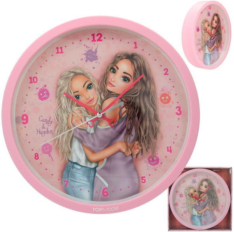 ZEGAR ŚCIENNY - TOP MODEL Producent: Depesche Kod produktu: 12432 Wiek: 3 lata + Bateria: 1x AA (dołączone) Wymiary opakowania: 26,5 x 26,5 x 4,8 cm Waga: 0,56 kg Zegar ścienny TOP MODEL HAPPY TOGETHER. Średnica zegara 24,5cm. Zegar posiada 1 baterię AA (w zestawie). Bardzo cichy, nie ma odgłosu tykania. Zapakowany w kolorowe opakowanie.