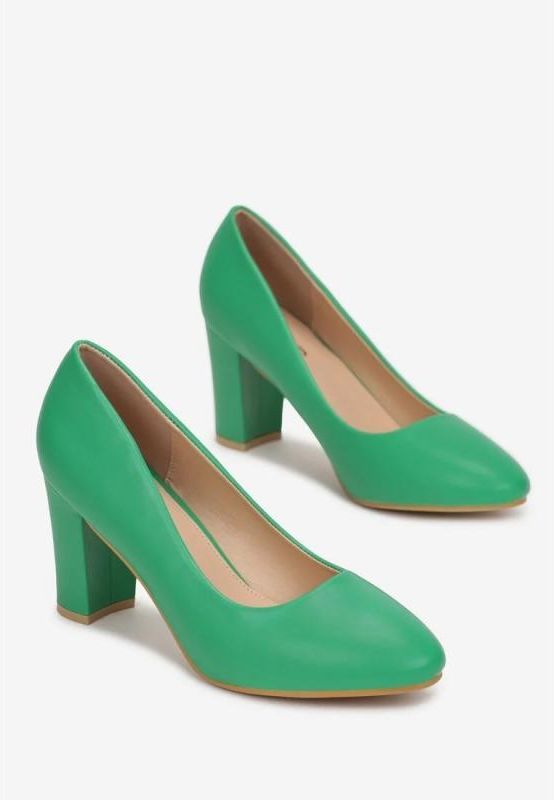 Czółenka Sophamna z okrągłym noskiem. Osadzone na powlekanym, wysokim słupku. Wsuwane, dobrze leżą na wąskiej stopie. Wykonane z licowej ekoskóry, łącznie z wkładką. Klasyczne, ponadczasowe. Kolor: Zielony Tęgość stopy: Wąski Rodzaj obcasa: Słupek Wkładka/wyściółka: Ekoskóra Materiał: Ekoskóra Nosek buta: Okrągły Zapięcie: Wsuwany/otwarty Sezon: Całoroczny Wysokość obcasa: 7.5cm