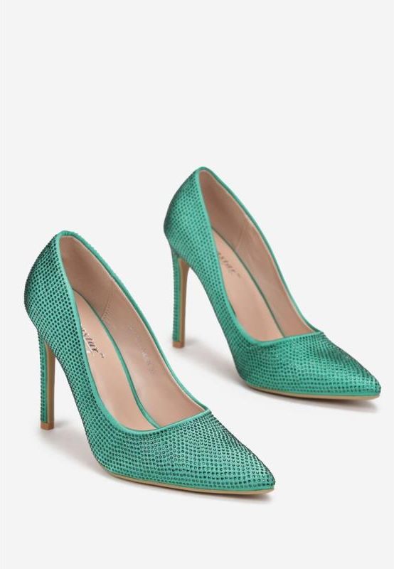 Satynowe szpilki na dość wysokim obcasie ze szpiczastymi noskami. W całości ozdobione cyrkoniami. Modne szpilki Relki sprawdzą się przy każdej eleganckiej stylizacji. Kolor: Zielony Tęgość stopy: Wąski Rodzaj obcasa: Szpilka Wkładka/wyściółka: Ekoskóra Materiał: Satyna Nosek buta: Szpiczasty Zapięcie: Wsuwany/otwarty Sezon: Całoroczny Wysokość obcasa: 10.5cm
