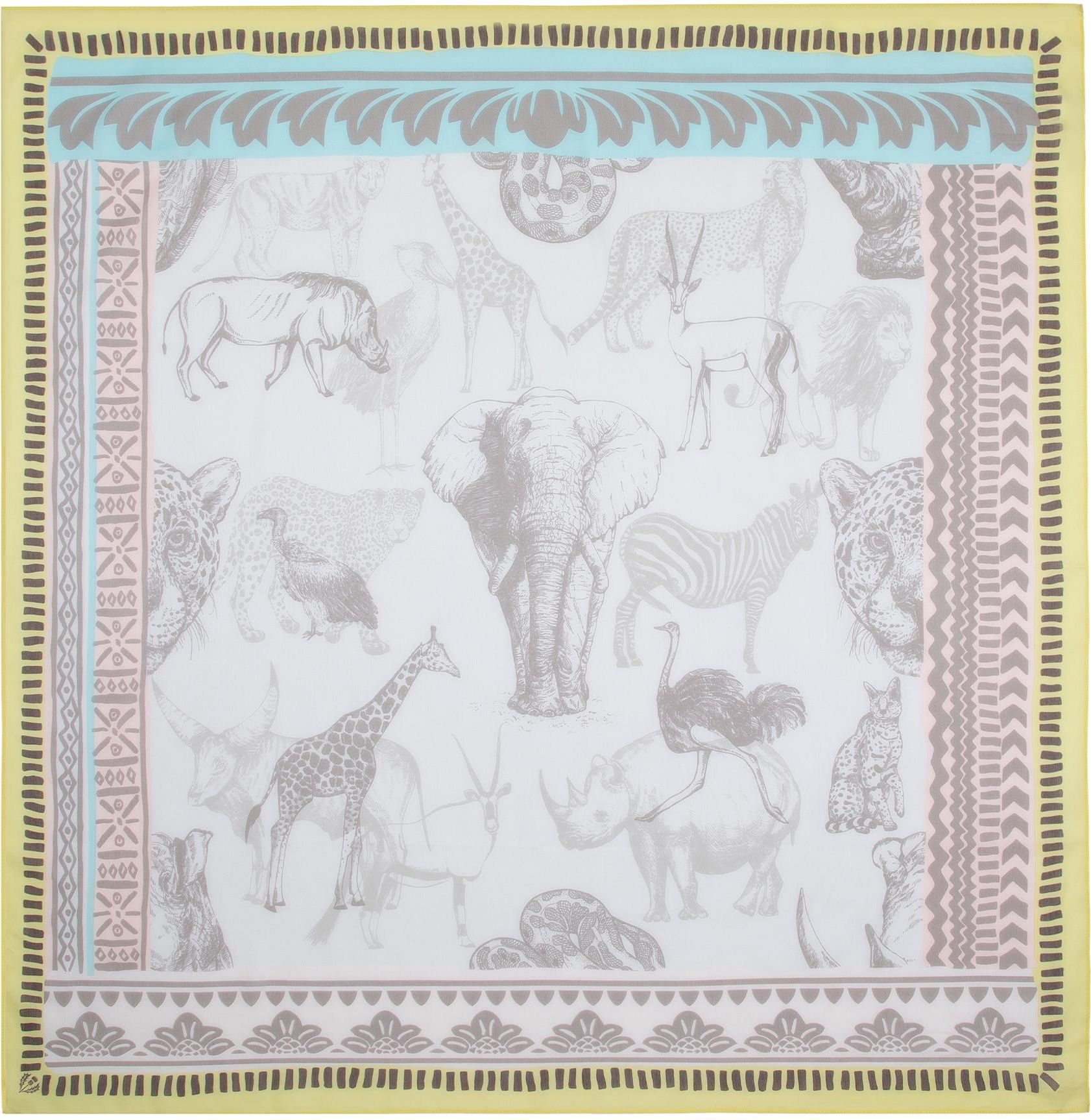 Wzorzysta damska chusta z bawełny Damska chusta to idealny dodatek do każdej kreacji. Chusta jest lekka, z przewiewnej tkaniny, a jej rozmiar pozwala nosić ją na wiele sposobów: jako szal, narzutka czy opaska na głowę. Atrakcyjny wzór z pewnością ożywi Twoją stylizację. Damska chusta jest wielosezonowa: może chronić przed słońcem, wiatrem i zimnem w zależności od pory roku. Jest to praktyczny i elegancki dodatek do Twojej garderoby. Dla kogo: To świetny pomysł na prezent dla eleganckiej kobiety. Nasza rada: Jeśli lubisz dodatki w zwierzęcy motyw, ten model jest dla Ciebie! Kluczowe cechy: Skład materiału: 70% bawełny i 30% poliestru. Wymiary: 103 cm x 104 cm. Estetyka: Zwierzęcy motyw chusty doda wyjątkowego uroku i oryginalności Twoim stylizacjom. Praktyczność: Dzięki delikatnej tkaninie, chusta może być noszona przez większość roku.