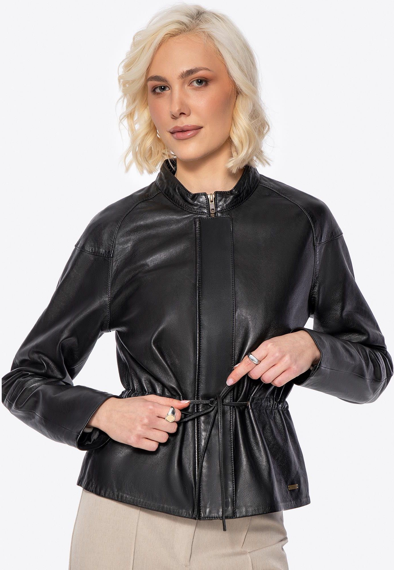 Damska kurtka skórzana z paskiem w talii czarna Płońsk