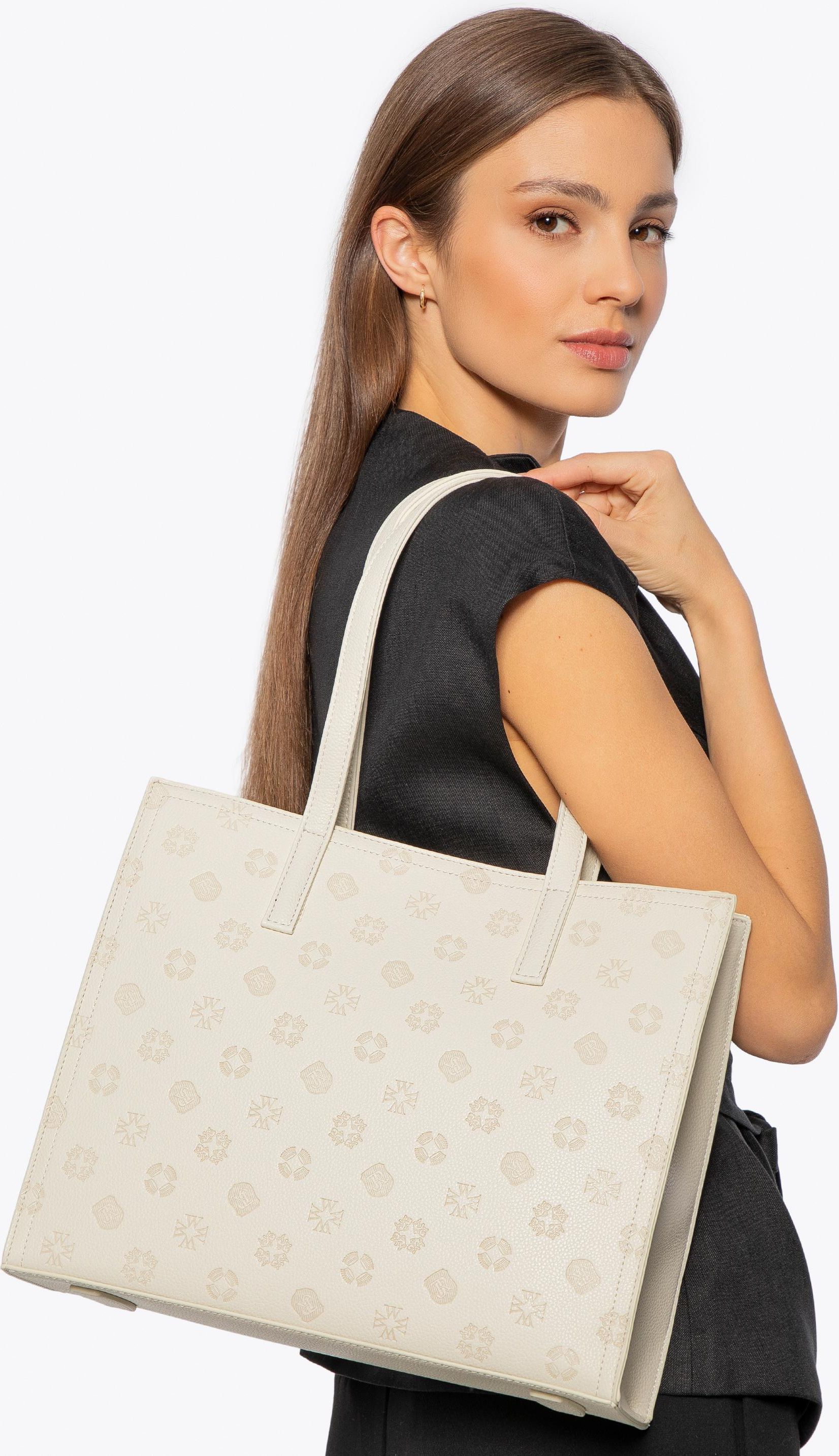 Damska shopperka z ekoskóry w tłoczoną sygnaturę kremowa Płońsk