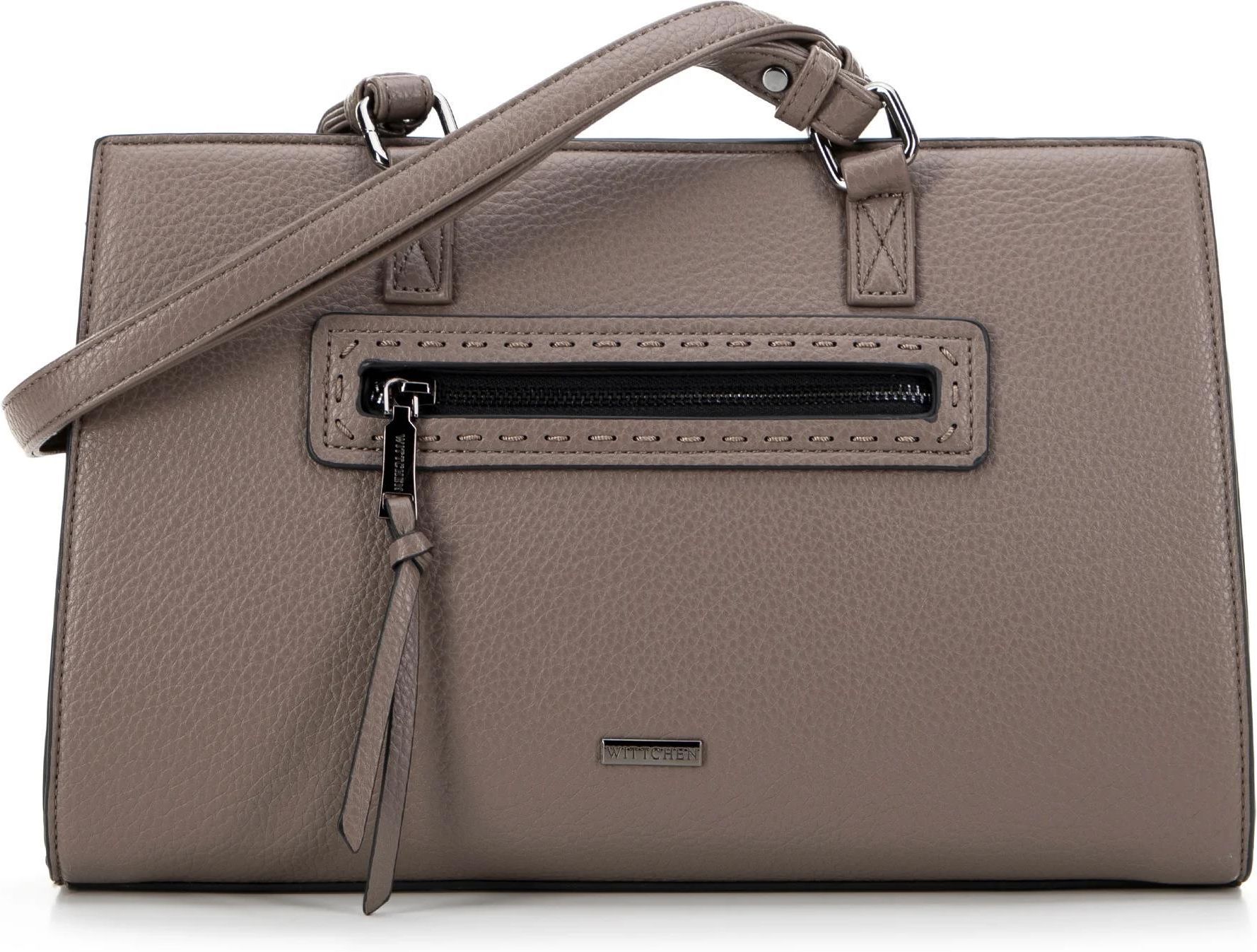 Damska torebka idealna na każdą okazję Nasza wyjątkowa damska torebka z ekoskóry to esencja elegancji i funkcjonalności. Usztywnione dno oraz dwie eleganckie rączki gwarantują nie tylko komfort, ale także solidność w codziennym użytkowaniu. Jednokomorowe wnętrze sprawia, że organizacja Twoich rzeczy staje się niezwykle łatwa i efektywna. Znajdziesz tu wszystko, czego potrzebujesz do organizacji: dwie małe otwarte kieszonki oraz kieszeń na suwak zapewniające dodatkową przestrzeń na drobne przedmioty. Umieszczone po obu stronach torebki zewnętrzne kieszenie na zamek błyskawiczny zapewniają szybki dostęp do kluczowych przedmiotów. Kieszeń na przodzie ozdobiona dekoracyjnym szwem, dodaje elegancji i klasy. Logo WITTCHEN, widoczne zarówno na przodzie, jak i wewnątrz torebki, podkreśla wyjątkowy charakter produktu i jego wysoką jakość. Dla kogo: Nasza torebka z ekoskóry doskonale sprawdzi się w rękach nowoczesnych kobiet, które cenią zarówno styl, jak i funkcjonalność. Nasza rada: Łącz naszą torebkę z klasycznymi koszulami i jeansami o dopasowanym kroju. Dodaj klasyczne buty na obcasie dla subtelnej elegancji. Kluczowe cechy: Materiał: Torebka została wykonana z trwałej, eleganckiej i przyjaznej dla środowiska ekoskóry. Wnętrze: Jednokomorowa torebka ułatwia efektywną organizację rzeczy, przy pomocy dwóch małych otwartych kieszonek i jednej kieszeni na suwak. Estetyczne detale: Dekoracyjna kieszeń na przodzie ozdobiona detalami dodaje torebce elegancki i stylowy wygląd. Bezpieczeństwo: Model posiada usztywnione dno zapewniające stabilność, solidne zapięcie na zamek błyskawiczny oraz kieszenie na suwak, umożliwiające przechowywanie wartościowych przedmiotów. Komfort noszenia: dwa solidne uchwyty dają możliwość noszenia torebki zarówno w dłoni, jak i na ramieniu - w zależności od preferencji użytkownika. Sprawdź, jak połączenie funkcjonalności i designu może podkreślić Twój unikalny styl i uczynić każdą okazję jeszcze bardziej wyjątkową!