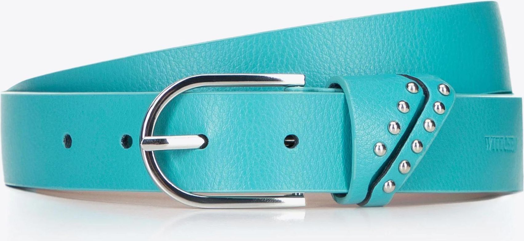 Damski pasek ze skóry naturalnej z nitami turkusowy Płońsk