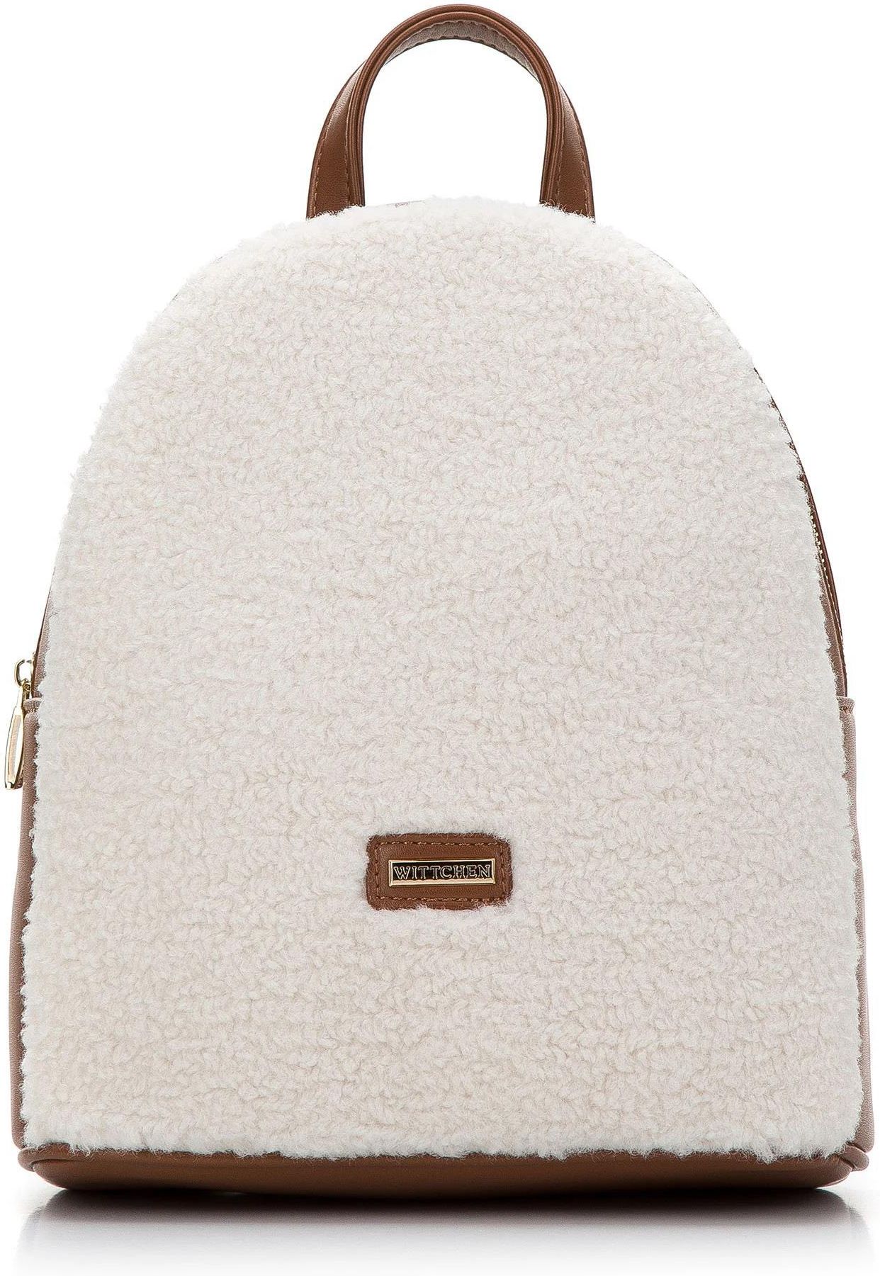 Damski plecak z przodem ze sztucznego futerka Kod produktu: 97-4Y-504-9 Mały damski plecak. Ten oryginalny plecak doda wyjątkowego charakteru do każdego Twojego stroju. Ma sztywny, lekko zaokrąglony kształt . Przód wykończony został miękkim, sztucznym futerkiem, które dopełnia wysokiej jakości skóra ekologiczna . W środku zmieścisz portfel, telefon, kilka kosmetyków, rękawiczki i chusteczki – w sam raz na krótkie zwiedzane, kawę z przyjaciółką lub do kina. Noś go do kurtki typu puffer i śniegowców lub połącz na przykład z ulubionym trenczem i botkami – w każdej sytuacji będziesz wyglądała stylowo. Damski plecak z przodem ze sztucznego futerka to modny dodatek, który warto mieć w swojej szafie. Nasza rada: dobierz do niego dodatki ze sztucznym futerkiem.Wewnątrz:jasna podszewka w logo WITTCHEN; dwie kieszenie, w tym jedna zapinana na suwak. Dodatkowo: 100% skóra ekologiczna; wąskie, regulowane paski naramienne; sztuczny kożuszek z przodu; zamykany na suwak . wysokość (cm): 26-28 szerokość (cm): 16-23 głębokość (cm): 8-10,5 sposób noszenia: na plecy materiał: skóra ekologiczna pomieści format A4: nie waga (kg): 0,55 wysokość całkowita (cm): 33 długość paska (cm): 79-95 długość rączek (cm): 22 materiał dodatkowy: poliester elementy metalowe: w kolorze złotym orientacja: pionowa wielkość torebki: mała kolekcja: Young rodzaj torebki: plecak okazja: do pracy styl: na suwak, casualowy, z futerkiem