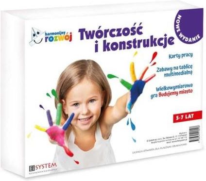 Pakiet Harmonijny Rozwój twórczość i konstrukcje zawiera: interaktywne gry przystosowane do zespołowego wykorzystania na tablicy multimedialnej, karty pracy do kopiowania zawierające ćwiczenia do pracy indywidualnej, grę edukacyjną wykonaną z kartonów o dużym formacie, przeznaczoną do gry na dywanie, do używania przez całą klasę lub grupy dzieci, poradnik metodyczny. Gry interaktywne Rysujmy razem – ćwiczenie swobodnej ekspresji plastycznej oraz sprawności grafomotorycznej. Jeśli w klasie znajduje się drukarka, stworzone dzieła można wydrukować zrobić z nich wystawę. Dopasuj do obrazka – polega na dopasowywaniu fragmentów ilustracji do odpowiednich miejsc planszy przedstawiającej różnorodne desenie. Uwrażliwia dzieci na deseń jako element dzieła plastycznego, ćwiczy percepcję wzrokową i koordynację wzrokowo-ruchową. Muzykanci – ćwiczenia rytmiczne rozwijają poczucie rytmu oraz koordynację wzrokowo-słuchowo-ruchową. Karty pracy Przestrzenny kot Teatr masek Co to może być? Budowanie z prostych kształtów Paluszkowy teatrzyk Dziewczynka i chłopiec cz. 1 Dziewczynka i chłopiec cz. 2 Kostka Dziurka od klucza (dla dzieci młodszych) Dziurka od klucza (dla dzieci starszych) Tworzę obrazek – karta kolorowa Zegar Gra wielkoformatowa Gra wielkoformatowa „Budujemy miasto” to duże kartony z rysunkami typowych budynków (np. szkoły, sklepu itp.), charakterystycznych pojazdów (samochodu strażackiego, karetki pogotowia) oraz fragmentów dróg. Z tych elementów dzieci mają ułożyć mapę miejscowości. Podczas gry uczą się współpracy i ćwiczą orientację przestrzenną oraz rozwijają umiejętności konstrukcyjne.