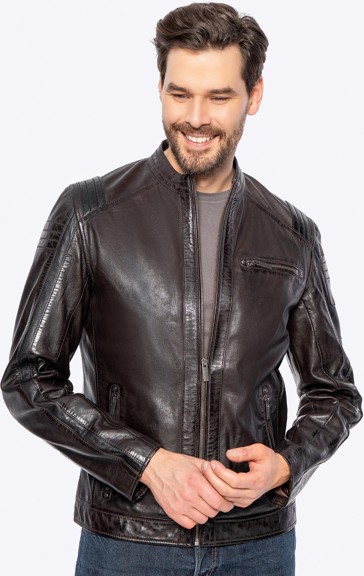 Męska kurtka biker ze skóry owczej ciemny brąz Płońsk