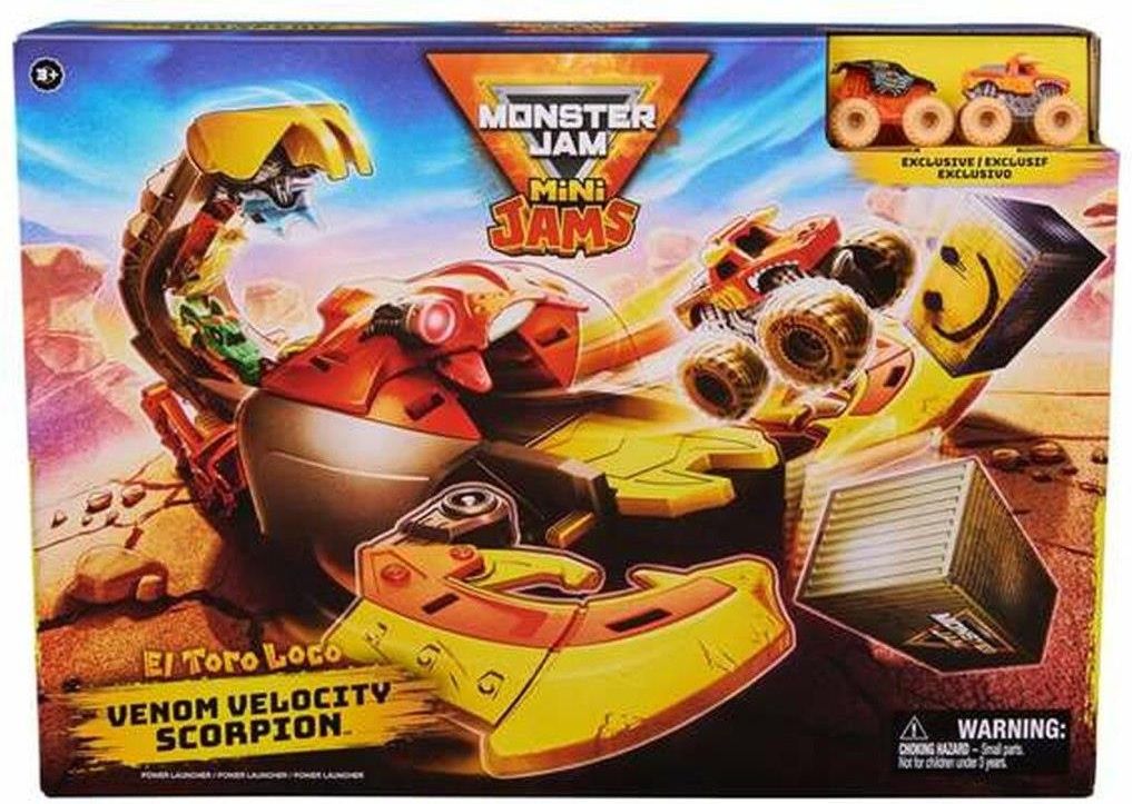 Monster Jam - Mini - El Toro Loco Venom Velocity Scorpion- 6069752 Zestaw El Toro Loco Venom Velocity Scorpion idealnie sprawdzi się dla młodych fanów Monster Jam Mini! Zapewni on niesamowite emocji, gdy ciężarówki wystrzeliwują z wyrzutni w dwóch różnych prędkościach! Ulepsz swoje akrobacje dzięki …