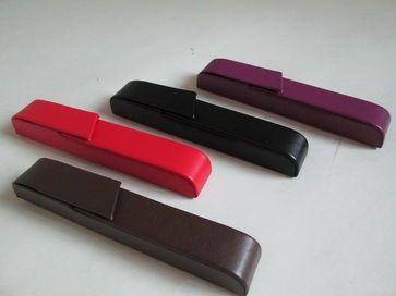 Eleganckie etui na długopisy ze skóry ekologicznej Sztywne, zamykane na magnes, w środku gumeczki przytrzymujące długopisy. Spójnie zmieszczą się jeden lub dwa długopisy