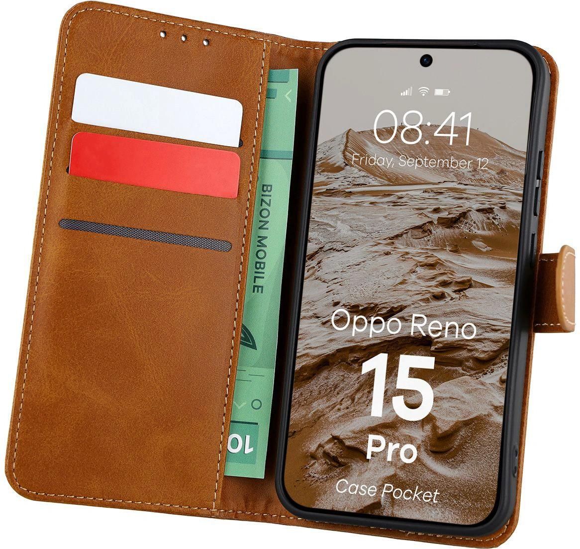 Bizon Etui Z Klapką Case Pocket Do Oppo Reno 15 Pro, Brązowe Płoty