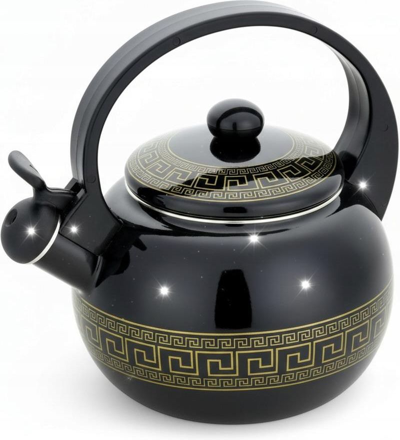 Czajnik emaliowany 2,2L z gwizdkiem Masterpan MP-2513 MASTERPAN MP-2513 to elegancki czajnik emaliowany o pojemności 2,2 litra, który łączy klasyczny wygląd z wygodą codziennego użytkowania. Sprawdzi się do przygotowania herbaty, kawy oraz innych gorących napojów w domu i w kuchni rodzinnej. STYLOWY DESIGN – CZERŃ I ZŁOTY WZÓR GRECKI Czajnik wyróżnia się czarnym, błyszczącym wykończeniem oraz dekoracyjnym złotym wzorem typu Greek Key. Dzięki temu dobrze prezentuje się na kuchence i pasuje zarówno do nowoczesnych, jak i klasycznych wnętrz. SOLIDNE WYKONANIE – STAL WĘGLOWA 0,8 MM I EMALIA Korpus wykonano z trwałej stali węglowej o grubości 0,8 mm, a całość pokryta jest emalią od wewnątrz i na zewnątrz. Takie wykonanie ułatwia codzienne użytkowanie i zapewnia estetyczny wygląd czajnika przez długi czas. GWIZDEK – SYGNAŁ, GDY WODA SIĘ ZAGOTUJE Czajnik posiada funkcję gwizdka, która informuje, że woda osiągnęła temperaturę wrzenia. To praktyczne rozwiązanie, które poprawia komfort użytkowania i pomaga uniknąć wygotowania wody, gdy jesteś zajęty innymi czynnościami w kuchni. WYGODNY UCHWYT I POKRYWKA – BEZPIECZNE UŻYTKOWANIE Model wyposażono w wygodny uchwyt oraz pokrętło pokrywki wykonane z tworzywa, co zwiększa komfort chwytu podczas nalewania. Pokrywka z gałką ułatwia nalewanie i napełnianie czajnika, a całość została zaprojektowana z myślą o codziennym, wygodnym użytkowaniu. SPECYFIKACJA Marka: MASTERPAN Model: MP-2513 Pojemność: 2.2 L Rodzaj: czajnik emaliowany z gwizdkiem Materiał: stal węglowa 0,8 mm Wykończenie: emalia wewnątrz i na zewnątrz Kolor: czarny Wzór: złoty Greek Key Zastosowanie: kuchenki gazowe, elektryczne, ceramiczne, indukcyjne