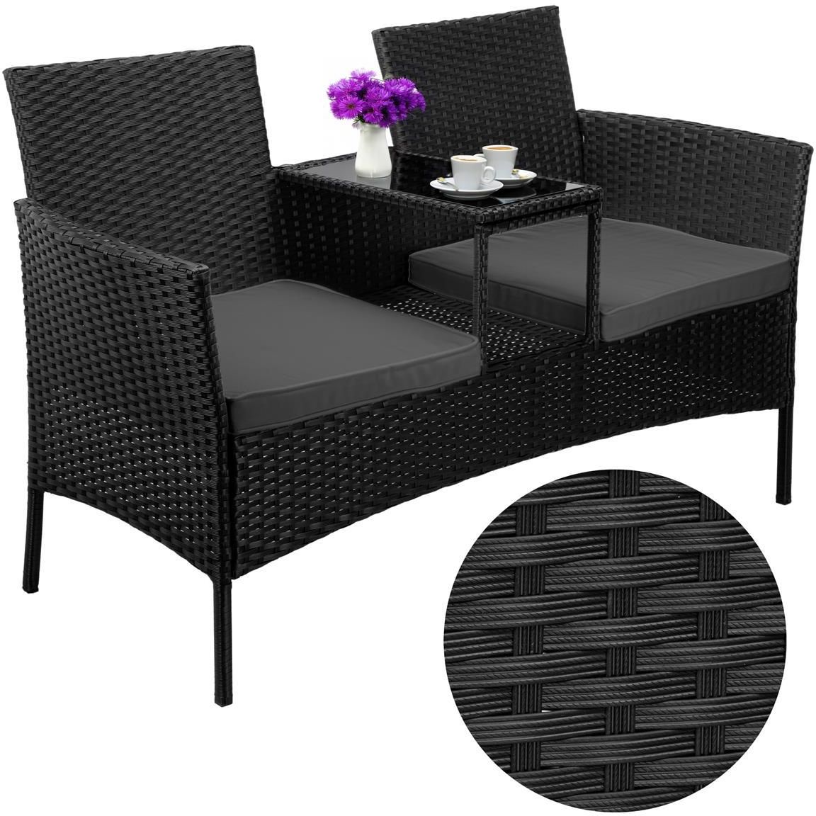 Ławka ogrodowa z technorattanu sofa CORDOBA czarna z szarymi poduszkami ⭐️ Stabilna stalowa konstrukcja ⭐️ Idealna dla dwóch osób ⭐️ Praktyczny stolik ze szklanym blatem ⭐️ Grube poduszki z hydrofobową powłoką ⭐️ Wytrzymały materiał technorattan ✨ Sofa Cordoba - elegancja i komfort na Twoim …