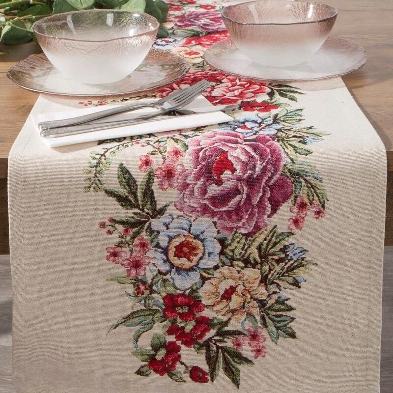 Wprowadź do swojego wnętrza ponadczasową elegancję z bieżnikiem gobelinowym GRIA marki Eurofirany. Wyróżnia się on wyjątkowym wzorem inspirowanym naturą – przewodnim motywem są misternie tkane kolorowe letnie kwiaty, co nadaje całości niepowtarzalnego charakteru. Harmonijna kompozycja radosnych kolorów na jasnym tle, doskonale odnajdzie się zarówno w klasycznych, jak i rustykalnych aranżacjach. Bogata faktura gobelinu nie tylko przyciąga wzrok, ale również podkreśla wysoką jakość wykonania. Bieżnik doskonale sprawdzi się jako elegancki akcent w salonie, na tarasie czy w przytulnym kąciku wypoczynkowym. Bieżnik może posłużyć jako obrus na mniejszy stół lub ławę, albo nakładka dekoracyjna na obrus. Idealny na prezent lub jako wyjątkowy dodatek do Twojego domu. Producent: Eurofirany Rozmiar: 45x140 cm Kolor: naturalny, czerwony Gramatura: 350 GSM Skład: 60% bawełna, 40% poliester