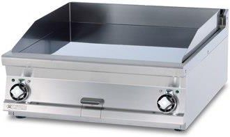 2x osobne sterowanie; 2x płyta grzejna; płyta robocza wykonana ze specjalnej trudnościeralnej stali; odpowiednia grubość płyty roboczej - 16 mm - gwarantuje idealne rozprowadzenie i utrzymywanie temperatury; higiena i komfort pracy; regulacja temperatury 50 - 300 °C; kontrolka pracy i grzania; wykonanie nierdzewne; szuflada na tłuszcz; możliwość zestawiania z podstawą otwartą lub szafkową; Modele ETS - płyta SUPERCHROM:; wykończenie SUPERCHROM zapewnia wytrzmałość większą niż tradycyjne powłoki chromowane; powierzchnia nieprzywieralna; powłoka SUPERCHROM powoduje mniejszą emisję ciepła, tym samym mniejsze zużycie energii; posiada aprobatę MoCA