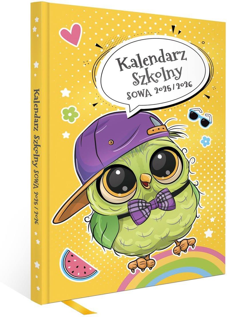 Kalendarz szkolny sowa 2025/2026 "Kalendarz książkowy. Układ kalendarium tygodniowy. Format A5;144 str. Oprawa twarda. Format: 145 mm x 210 mm, szyty, zadruk full kolor, kalendarium od września 2025 do sierpnia 2026, rozkład kalendarium tygodniowy, dodatkowe treści: porady, ciekawostki, cytaty, …