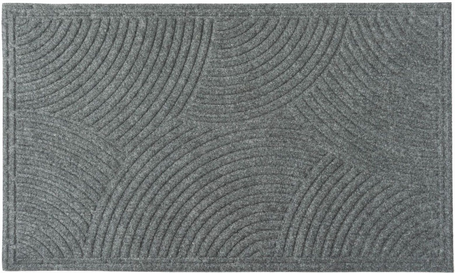 Wycieraczka tekstylna w prążki szara 45x75cm Multi-Decor Wycieraczka tekstylna ze wzorem w prążki, wyprodukowana została z dwóch wyjątkowo wytrzymałych materiałów. Powłoka wierzchnia to w 100 % poliester, natomiast podkład to w 100 % guma. To właśnie dzięki czemu jest solidna i trwała, a przy tym dodatkowo estetyczny wygląd. Interesujący geometryczny wzór na wycieraczce ucieszy każdego, kto ceni sobie połączenie estetyki z funkcjonalnością. Wytłoczenia na wycieraczce świetnie zbierają wszelkie nieczystości z obuwia.