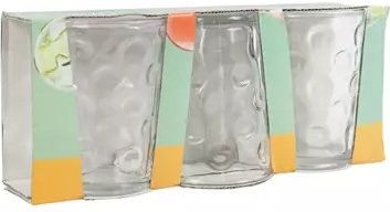 zestaw 3 szklanek pojemność: 200 ml wypukły, dekoracyjny wzór przezroczyste szkło można myć w zmywarce