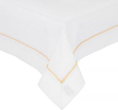 Obrus Gold Line to wyjątkowy dodatek, który wnosi do każdego wnętrza elegancję i klasę. Jego śnieżnobiały materiał, wykonany z najwyższej jakości poliestru, został subtelnie wykończony złotą ramką z połyskującego sznurka. To perfekcyjna dekoracja stołu, która zachwyca swoją prostotą i delikatnym blaskiem. Obrus doskonale sprawdzi się podczas rodzinnych uroczystości, eleganckich kolacji czy świątecznych spotkań, podkreślając wyjątkowy charakter każdego spotkania.