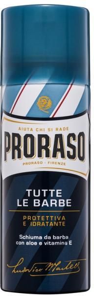Pianka do golenia Proraso Blue służy do codziennej pielęgnacji każdego rodzaju skóry. Ma delikatną formułę, która będzie dobrze tolerowana nawet przez wrażliwą skórę. Linia Proraso Blue jest wzbogacona o aloes i witaminę E. Nie zawiera parabenów, silikonów, sztucznych barwników ani olei mineralnych. Produkty mają wyrazisty zapach piżma i bursztynu. Ułatwia golenie Nawilża i wzmacnia skórę Poprawia jej elastyczność Chroni przed podrażnieniami Ma bogatą, kremową konsystencję Mocno się pieni Zawiera wyciąg z aloesu o właściwościach nawilżających, regenerujących i zmiękczających. Aloes doskonale łagodzi podrażnienia, przyspiesza proces regeneracji tkanek i zwiększa elastyczność skóry. Działa także antybakteryjnie i przeciwzapalnie. Witamina E nazywana „witaminą młodości” nawilża i odżywia skórę, chroni ją przed wolnymi rodnikami oraz opóźnia procesy starzenia. Sposób użycia: Zmoczyć skórę ciepłą wodą. Piankę wstrząsnąć przed użyciem, po czym rozprowadzić ją równomiernie na skórze. Przystąpić do golenia. Rezultat: Wzmocniona, ukojona i nawilżona skóra podczas golenia. Rekomendujemy jednoczesne stosowanie pozostałych produktów do golenia Proraso Blue w celu uzupełnienia codziennej pielęgnacji skóry. Włoska marka Proraso oferuje szeroką gamę produktów do golenia tradycyjnego. Oparte na naturalnych ekstraktach roślinnych kosmetyki pielęgnują i zmiękczają zarost dbając również o kondycję skóry. W ofercie Proraso znajdują się różne linie produktów oznaczone kolorami – każda ma inne składniki aktywne i jest dedykowana do różnych rodzajów zarostu i skóry.