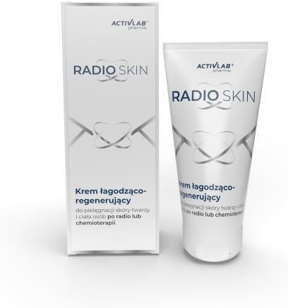 Radioskin – krem łagodząco-regenerujący do pielęgnacji skóry twarzy i ciała osób po radio lub chemioterapii. Radioskin to krem o unikalnej kompozycji korzystnej dla skóry podrażnionej i suchej, także po zabiegach radioterapii i chemioterapii. Radioskin pozwala uzyskać zmniejszenie podrażnienia skóry dzięki doskonałej wchłanialności i właściwościom odżywczym. Wspomaga proces regeneracji poprzez intensywne natłuszczenie i nawilżenie skóry. Korzystne działanie produktu Radioskin zapewniają takie składniki jak: Pantenol działa nawilżająco, łagodzi podrażnienia, regeneruje, nadaje skórze miękkość i elastyczność, Alantoina działa łagodząco, nawilżająco, kojąco oraz przyspiesza regenerację skóry nadając jej elastyczny oraz aksamitny wygląd, Kwas hialuronowy jest naturalnym składnikiem skóry, odpowiedzialnym za jej odpowiednie nawilżenie, Olej migdałowy regeneruje, doskonale nawilża i zmiękcza naskórek, Oliwa z oliwek przyspiesza regeneracje oraz zapewnia uczucie nawilżenia skóry, Ekstrakt z lukrecji koi oraz łagodzi podrażnienia, Ekstrakt z algi brunatnicy przyspiesza regenerację naskórka oraz posiada właściwości odżywcze, Ekstrakt z nagietka łagodzi podrażnienia zmniejszając rumień i zaczerwienienia, Ekstrakt z trzciny Karka wykazuje właściwości ujędrniające, zmiękczające i wygładzające. Stosowanie Delikatnie smarować skórę w miejscach podrażnionych 2 – 3 razy dziennie. Składniki Aqua, Caprylic/Capric Triglyceride, Propylene Glycol, Glycerin, Prunus Amygdalus Dulcis Oil, Glyceryl Stearate Citrate, Glyceryl Stearates, Canola Oil, Dicaprylyl Carbonate, Olea Europaea Husk Oil, Cetearyl Alcohol, Hydrogenated Coco-Glycerides, Olus Oil, Glycyrrhiza Glabra Root Extract, Calendula Officinalis Flower Extract, Laminaria Ochroleuca Extract, Phragmites Kharka Extract, Poria Cocos Extract, Panthenol, Sodium Hyaluronate, Hydrogenated Vegetable Oil, Candelilla Cera, Olea Europaea Fruit Oil, Tocopheryl Acetate, Acrylates/C10-30 Alkyl Acrylate Crosspolymer, Sodium Benzoate, Sodium Phytate, Xanthan Gum, Phenoxyethanol, Ethylhexylglycerin, Allantoin, Sodium Hydroxide, Parfum, Tocopherol, Beta-Sitosterol, Squalene, Glycine Soja Oil, Citric Acid. Ostrzeżenia Nie stosować w przypadku nadwrażliwości na którykolwiek ze składników preparatu. Przechowywać w temperaturze pokojowej, w suchym miejscu, w zamkniętym opakowaniu.