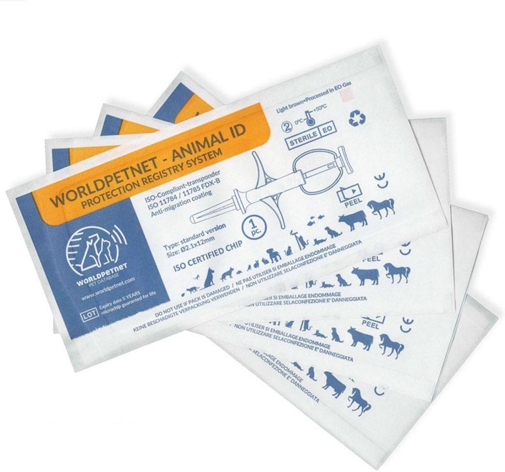 Numer początkowy mikroczipa: 616... ZESTAW - 20 SZTUK Specyfikacja techniczna zestawu RF-IDW-3 dla małych zwierząt Jednorazowy aplikator - strzykawka z mikroczipem; zestaw zawiera 6 naklejek z numerem czipa i kodem kreskowym; spełniający wszystkie normy ISO. Transponder standard czipa: ISO 11784/11785 FDX-B; typ czipa: HitagS-256/EM4305, 134,2KHz; wymiary: długość 7mm, średnica 1.25mm ± 0,1mm; rodzaj sterylizacji: tlenek etylenu; klasa szczelności: IP67; temperatura przechowywania -30°C do +85°C; gwarancja: dożywotnia (po implantacji) Cechy zestawu RF-IDW-3 dla małych zwierząt zapewnia bezpieczeństwo w programach identyfikacji i ewidencji zwierząt; bardzo dobra trwałość i jakość wykonania; igła wykonana z najwyższej jakości stali chirurgicznej; zastosowano technologie Parylene C w celu zabezpieczenia mikroczipa; zastosowano szkło biokompatybilne w celu ochrony organizmu zwierzęcia; system Anti Drop System – zapobiega wypadaniu transpondera aż do momentu jego implementacji; 100% niezawodności; zgodny z wszystkimi normami ICAR ISO standard 24631-Part 1 "ISO 11784/11785, ISO standard 24631-3 (Radiofrequency identification of animals Evaluation of performance of RFID transponders conforming with ISO 11784 and ISO 11785 ; odległość odczytu zróżnicowana od rodzaju czytnika. REJESTRUJĄC ZWIERZĘ W bazie CBDZOE, URUCHAMIASZ PROCEDURĘ REJESTRACJI NUMERU MIKROCZIPA W ŚWIATOWEJ BAZIE DANYCH WORLDPETNET --- www.worldpetnet.comMIKROCZIP jest kompatybilny (współpracuje) z drzwiczkami (klapą) dla kota SureFlap, PetSafe, Closer Pets, FERPLAST i innymi które wyposażone są w czytnik mikrochipów (standard FDX-B).