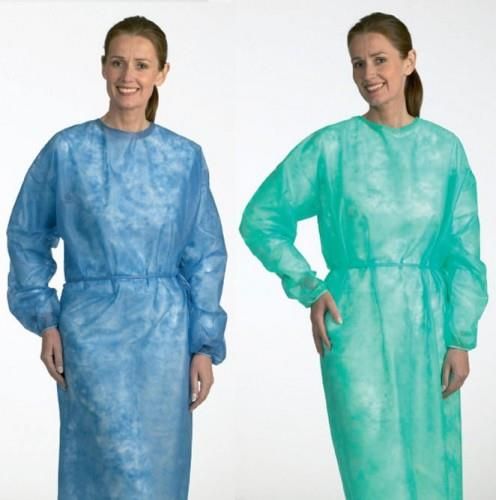 Fartuch jednorazowy wiązany na troki z włókniny PP. Rękaw zakończony gumką.Kolor: zielony , niebieski