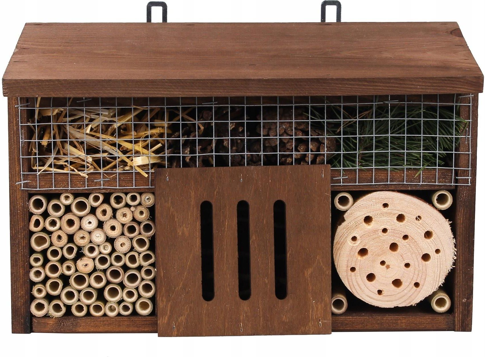 DUŻY DREWNIANY DOMEK / HOTEL DLA OWADÓW POŻYTECZNYCH (PSZCZOŁY MURARKI) 37x14x24/26 cm Wysokość (cm): 26 Szerokość (cm): 14 Długość (cm): 37 Surowiec: Drewno DUŻY DREWNIANY DOMEK / HOTEL DLA OWADÓW POŻYTECZNYCH (PSZCZOŁY MURARKI) 37x14x24/26 cm Domek stanowi naturalne schronienie dla owadów zapylających i zwalczających szkodniki, które w wyniku gęstnienia betonowej zabudowy nie mają już takiej swobody w wyborze miejsca zamieszkania jak niegdyś. Domek wykonany jest praktycznie w całości z naturalnych surowców: drewnianych deseczek, szyszek, kawałków suchego drewna, słomy, gałązek oraz pustych rurek bambusa. Dzięki różnorodności materiału schronienie w domku znajdą: trzmiele, pszczoły, łowiki, murarki, motyle i wiele innych gatunków owadów pożytecznych. Domek będzie służył owadom przez cały rok: na wiosnę jako miejsce składania jaj, w upalne dni w zamian za nocleg w domku owady zajmą się zapylaniem kwiatów i zwalczaniem niechcianych szkodników w ogrodzie, natomiast w okresie jesienno - zimowym budka pomoże owadom przetrwać niskie temperatury i schronić się przed innymi drapieżnikami. Idealne na usytuowanie domku są miejsca zaciszne i słoneczne, najlepiej po stronie południowej lub południowo - wschodniej, osłonięte od wiatru i deszczu, a więc: pod dachem, szeroką rynną, w altanie lub pod wiatą lub pomiędzy drzewami owocowymi. Domek pełni nie tylko funkcje użytkowe, ale również ozdobne - sam w sobie stanowi ciekawy element dekoracyjny ogrodu. SPECYFIKACJA Wymiary domku*: szerokość: 37 cm głębokość domku: 11 cm głębokość daszku: 14 cm wysokość domku: 24 cm wysokość z zawieszkami: 26 cm Cechy produktu: wykonanie z materiałów naturalnych: drewna, bambusa, szyszek, gałązek, słomy odporny na działanie czynników zewnętrznych przydatny owadom przez cały rok * wymiary domku i jego odcień mogą się nieznacznie różnić od podanych ze względu na ręczne wykonanie z surowców naturalnych