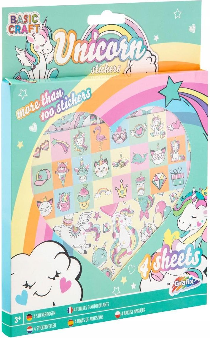 Naklejki jednorożec 4 arkusze GRAFIX ✅ ✔️ Produkt posiada 4x arkusze naklejek, których suma wynosi więcej niż 100 Sprawdzą się idealnie do ozdabiania prezentów, zeszytów, piórników Łatwo się odklejają Idealnie sprawdzą się na prezent ➡️ Producent: Grafix Opakowanie: blister Wymiary: 227x184 mm EAN: …