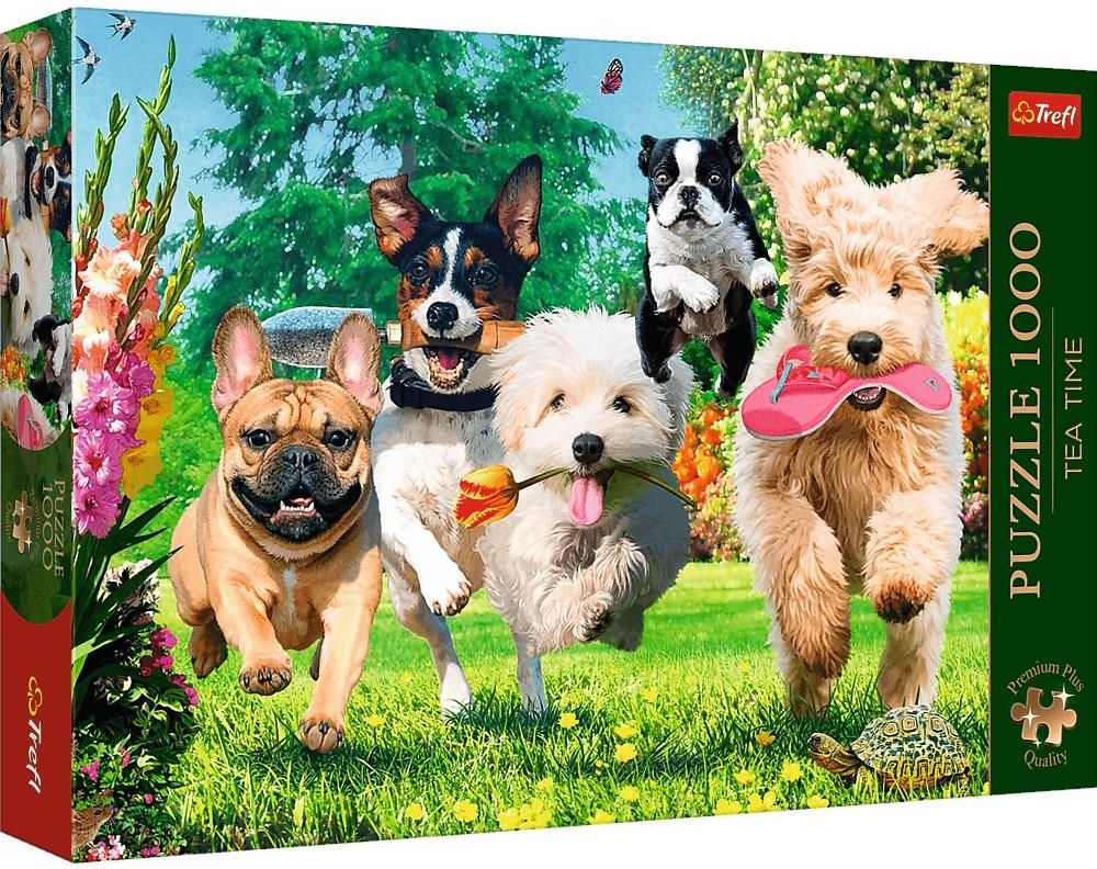 Puzzle Premium Plus Quality 1000 el. Tea Time: Nadchodzą kłopoty! Premium Plus Quality — nowa jakość układania puzzli. Puzzle Nadchodzą kłopoty! przedstawiają uchwycone w biegu, rozkoszne, psiaki. Po ich ułożeniu powstanie obraz o wymiarach 683x480 mm. Tea Time: Malowane obrazy pełne nostalgii …