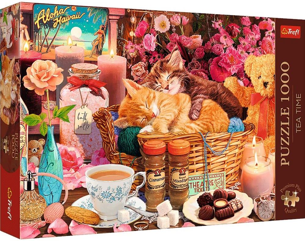 Puzzle Premium Plus Quality 1000 el. Tea Time: Wszystko co przyjemne Premium Plus Quality — nowa jakość układania puzzli. Puzzle Wszystko co przyjemne przedstawiają przeróżne przyjemności: słodycze, kwiaty, śpiące w koszu kotki i wiele innych. Po ich ułożeniu powstanie obraz o wymiarach 683x480 mm. Tea Time: Malowane obrazy pełne nostalgii Rozbudź swoje zmysły i wejdź w świat malarskiego piękna dzięki puzzlom Trefl Premium Plus Quality: Tea Time! Każdy element tej układanki to fragment wyjątkowego obrazu, pełnego kolorów, emocji i wyrafinowanej techniki artystycznej. Odkrywaj malowane detale i odpręż się przy filiżance herbaty, układając te wyjątkowe puzzle. To nie tylko wyzwanie dla umysłu, lecz także szansa na zanurzenie się w świecie sztuki. Układanie puzzli to doskonały trening pamięci, rozwój zdolności manualnych oraz nauka koncentracji, cierpliwości i spostrzegawczości. Ciesz się, układając puzzle Trefl i podziwiaj malarskie piękno, kawałek po kawałku! Puzzle Premium Plus Quality. Układanie w stylu Premium Premium Plus Quality to wyjątkowa seria puzzli marki Trefl. Znajdziesz w niej idealnie dopasowane elementy, wysokiej jakości tekturę oraz wyselekcjonowane obrazy o zróżnicowanej tematyce. Seria Trefl Premium Plus Quality oferuje dwie kategorie tematyczne: fotograficzną - Photo Odyssey, w której odkryjesz wyjątkowe zdjęcia przedstawiające różne zakątki świata z innej perspektywy, utrzymane w jednej, ciekawej stylistyce oraz Tea Time - serię sielskich, malowanych obrazów o nostalgicznym charakterze w odmiennej stylistyce niż ta, znana dotychczas w regularnej ofercie Trefl Original. Doceń wyjątkową jakość puzzli  Odkryj wysoką jakość wykonania puzzli Premium Plus Quality. Co wyróżnia tę serię spośród pozostałych? Grubsza tektura puzzlowa, specjalny kształt puzzli oraz niezafoliowane pudełko, zabezpieczone wyłącznie naklejkami. Seria posiada też certyfikat FSC, co oznacza, że do produkcji puzzli zostały wykorzystane materiały pochodzące z lasów zarządzanych w sposób odpowiedzialny. Do puzzli został dołączony plakat w formacie A4.  Wymiary pudełka: 400x270x60 mm Wymiary obrazka po ułożeniu: 680x480 mm Produkt przeznaczony dla dzieci od 12. roku życia i dorosłych.  Szukasz pomysłu na miły wieczór w domowym zaciszu? Układanie puzzli to świetny sposób na spędzenie wolnego czasu w gronie przyjaciół i rodziny a do tego rewelacyjny trening dla mózgu. Szeroki wybór wzorów pozwala wybrać układankę dopasowaną do Twoich zainteresowań. Puzzle są doskonałym prezentem z okazji urodzin lub świąt. 11 powodów, dlaczego warto układać puzzle