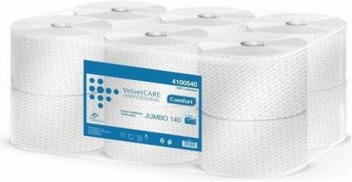 VELVET PAPIET TOALETOWY COMFORT BIAŁY JUMBO 140M 1 ROLKA Papier toaletowy w rolce VelvetCARE to produkt higieniczny najwyższego gatunku.Jest miękki, delikatny i dba o Twoją skórę, nie podrażniając jej.Każda rolka papieru toaletowego została wyprodukowana z wykonane w 100% z celulozy.Posiada dwie warstwy, dzięki czemu jest mocny i wytrzymały, jednocześnie nie tracąc delikatności. Cechy:- opakowanie zawiera 12 rolek papieru toaletowego- papier biały, dwuwarstwowy- miękki i delikatny- wyprodukowany ze 100% celulozy- klejone warstwy: tak- gofr: tak- liczba warstw: 2- wymiar listka: 92x125 mm- długość rolki: 140 m- średnica rolki: 190 mm- ilość listków: 1120