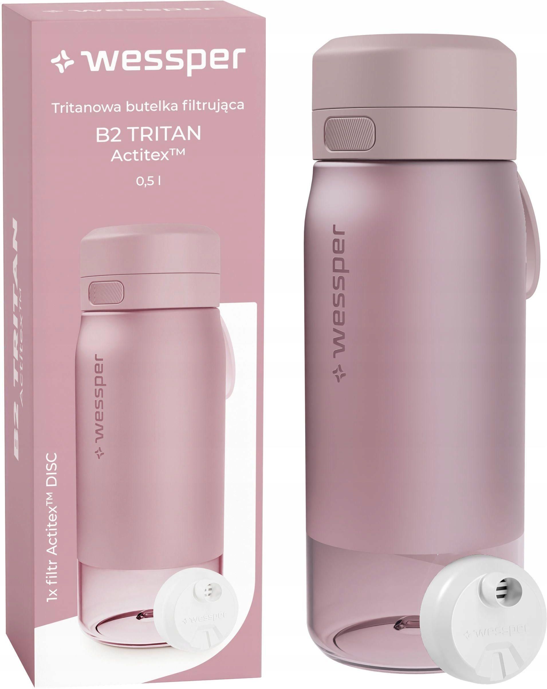 Marka: Wessper Model: B2 TRITAN Actitex™ Typ: Butelka filtrująca Kolor: Różowy Materiał: Tritan™ Pojemność produktu: 0,5 l Wysokość produktu: 21 cm Średnica produktu: 7,5 cm Średnica wlewu: 5 cm Waga produktu: 0,17 kg 💦 Czysta i smaczniejsza woda zawsze pod ręką Wessper B2 TRITAN Actitex™ to butelka filtrująca premium, zaprojektowana dla osób, które cenią mobilność, wygodę i dobry smak wody - w pracy, na treningu, w podróży czy na uczelni. Dzięki lekkiej, wytrzymałej konstrukcji z Tritanu™, łatwo zabrać ją ze sobą wszędzie, nie obciążając torby czy plecaka. Butelka wyposażona jest w nowoczesny filtr Actitex™ DISC, który eliminuje nieprzyjemny zapach chloru oraz niepożądane substancje, pozostawiając w wodzie naturalne minerały. 💧 Filtracja Actitex™ DISC – technologia, która poprawia smak wody i redukuje zanieczyszczenia Butelka Wessper B2 TRITAN wyposażona jest w nowoczesny filtr Actitex™ DISC, oparty na mikroporowatej włókninie węglowej - rozwiązaniu objętym patentem. Dzięki temu filtr jest wyjątkowo gęsty i skuteczny, a przy tym kompaktowy. Jak działa filtr? Redukuje chlor, nieprzyjemny zapach i smak oraz substancje mechaniczne – dzięki mikroporom włókniny węgla, woda jest wyraźnie lepsza w smaku. Zachowuje minerały – filtr nie usuwa ważnych składników naturalnych, co wspiera codzienne nawodnienie i smak. Zapewnia 200 litrów filtrowanej wody lub 30 dni użytkowania. Komfort codziennego użytkowania Szeroki wlot – szybkie napełnianie wodą z kranu i łatwe czyszczenie wnętrza Ustnik bez słomki – umożliwia naturalne, płynne picie bez konieczności zasysania Wbudowany licznik filtra – dyskowy znacznik przypomina o konieczności wymiany wkładu Actitex™, bez aplikacji i bez zapisywania dat Prosty demontaż filtra – łatwe czyszczenie, więcej higieny Pasuje do standardowych uchwytów rowerowych i samochodowych Butelkę (z wyjątkiem filtra) można myć w zmywarce 🛡️ Tritan™ – lekkość, trwałość i bezpieczeństwo Korpus butelki Wessper B2 TRITAN Actitex™ wykonany jest z Tritanu™ — materiału odpornego na uderzenia i zarysowania. Nie chłonie zapachów, nie odbarwia się i długo zachowuje estetyczny wygląd. To tworzywo cenione w medycynie i sporcie – sprawdza się na siłowni, w biurze lub na spacerze. 100% szczelności – bezpieczna w każdej sytuacji Niezależnie od tego, czy wrzucasz ją do torby treningowej, plecaka na wycieczkę czy uchwytu w aucie – butelka Wessper B2 TRITAN Actitex™ pozostaje szczelna w każdej pozycji. Precyzyjnie dopasowana zakrętka zapobiegają przypadkowym wyciekom, dzięki czemu możesz korzystać z niej swobodnie – w ruchu, w pracy, w podróży. Bezpieczne materiały – bez BPA Butelka Wessper B2 TRITAN Actitex™ została wykonana z materiałów dopuszczonych do kontaktu z żywnością i nie zawiera BPA (bisfenolu A). Dzięki temu masz pewność, że codzienne korzystanie z butelki jest bezpieczne i zgodne z obowiązującymi normami. Wessper – czysta wolność Seria butelek B2 Actitex™ to nowa definicja mobilnego nawodnienia. Zdrowa, smaczna woda zawsze przy Tobie – bez jednorazowego plastiku i bez zbędnych kompromisów. 🎯 Najważniejsze cechy produktu: 0,5 litra pojemności Redukuje szkodliwe i niepożądane substancje Szczelne zamknięcie Szeroki wlot + ustnik bez słomki Lekki i odporny Tritan™ Wbudowany licznik wymiany filtra Komponenty wolne od Bisfenolu A (BPA Free) Można myć w zmywarce Wessper to polska marka specjalizująca się w filtracji wody i akcesoriach do jej codziennego użytkowania. W ofercie znajdują się zarówno nowoczesne filtry, funkcjonalne dzbanki, jak i stylowe butelki.Dzięki technologicznej precyzji, dbałości o detale i świadomemu projektowaniu, Wessper wspiera codzienne nawyki związane z nawodnieniem – z korzyścią dla zdrowia, wygody i środowiska.
