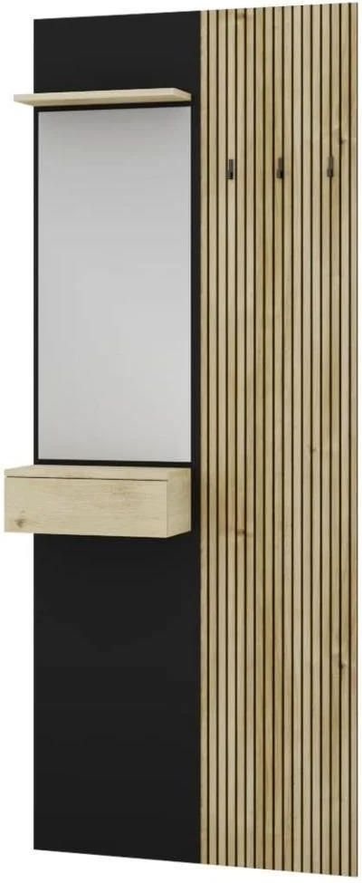 Wieszak Wenis 02 1S Z Lustrem Czarny / Dąb Wotan Płoty
