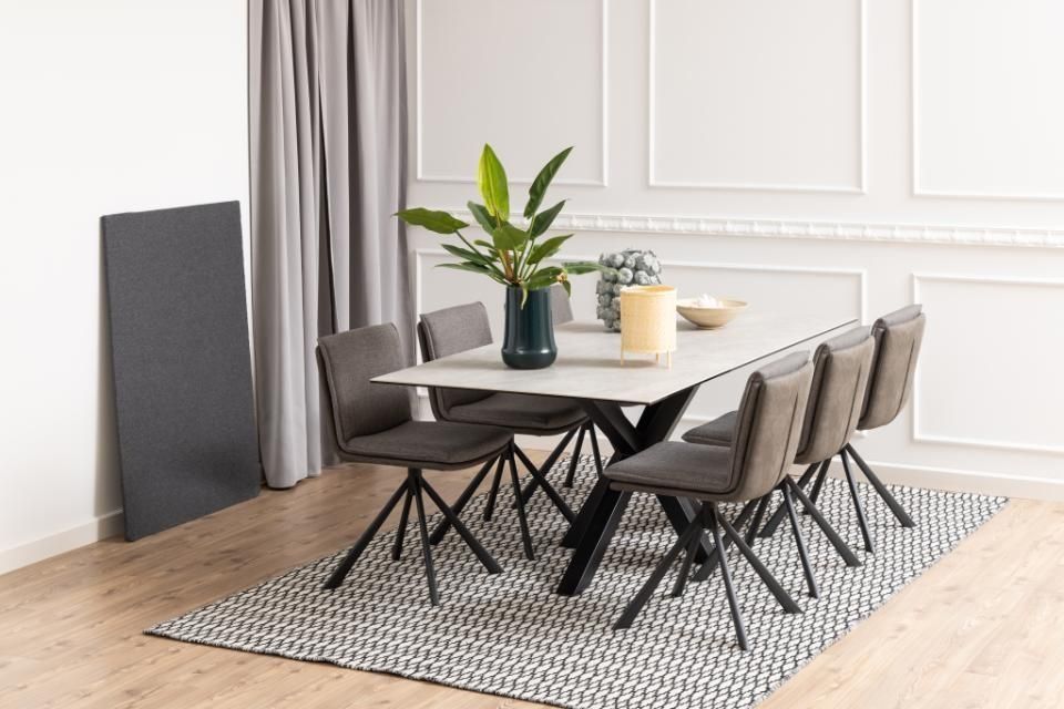 STÓŁ CERAMICZNY Heaven 200x100cm szary/czarny DLA 8 OSÓB Odkryj nowoczesność i elegancję ze stołem Heaven – idealny do przestronnych jadalni Stół Heaven od Actona to wyraz nowoczesnego designu, który wprowadzi luksusowy i funkcjonalny element do Twojej przestrzeni życiowej. Z jego 200 cm długości, stół idealnie nadaje się do obszernych jadalni, gdzie może komfortowo pomieścić do 8 osób. Wykonany z wysokiej jakości szarego ceramiki, stół Heaven jest nie tylko estetycznie atrakcyjny, ale też wyjątkowo trwały. Niech stół Heaven stanie się centrum Twojej jadalni, gdzie spotkania rodzinne i towarzyskie nabierają wyjątkowego charakteru. Ten loftowy stół jadalniany to idealne połączenie funkcjonalności i nowoczesnego designu, które przyciąga uwagę i jest trwałe na lata. ✅ Szary ceramiczny blat, odporny na ciepło i zarysowania, idealny dla codziennego użytku ✅ Elegancka, proszkowo malowana na czarno metalowa podstawa dodaje stabilności i nowoczesnego stylu ✅ Może pomieścić do 8 osób, idealny na rodzinne obiady czy spotkania towarzyskie ✅ Minimalistyczna elegancja i geometryczne kształty podstawy wnoszą nowoczesną estetykę do każdej przestrzeni ✅ Łatwy w utrzymaniu i czyszczeniu, idealny do dynamicznych, nowoczesnych domów Zamów już dziś, aby przekształcić swoją jadalnię w przestrzeń pełną stylu i elegancji! Wysokość (cm): 75,5 Szerokość (cm): 200 Głębokość (cm): 100 Do użytku zewnętrznego: nie Możliwość sztaplowania: nie Typ mebla: Meble nowoczesne, Meble industrialne, Meble loftowe, Meble metalowe, Meble szare Pomieszczenie: jadalnia, kuchnia, salon Styl: nowoczesny, industrialny, loftowy Wymaga montażu: tak Wykończenie: matowe Rodzaj podstawy: 4 nogi Materiał podstawy: metal Materiał blatu: ceramika Materiał: ceramika, metal Kształt blatu : prostokątny Kolor podstawy: czarny Kolor blatu: szary jasny Kolor:: szary jasny Kolor: szary, czarny