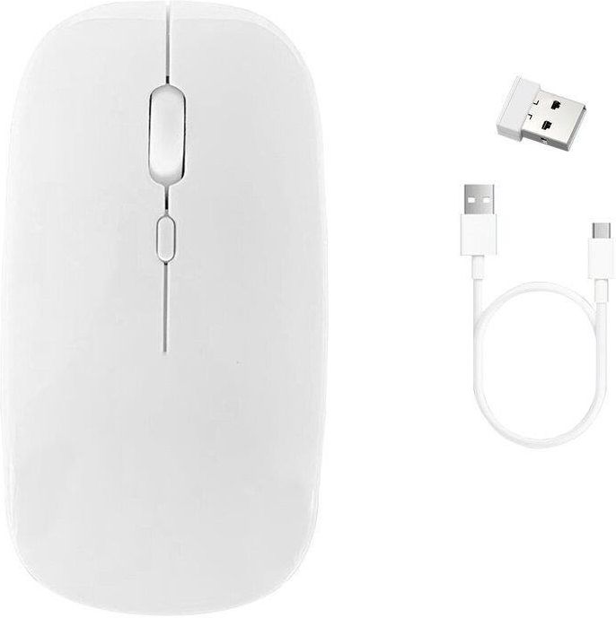 Uniwersalna bezprzewodowa mysz komputerowa Doskonała mysz komputerowa Mysz komputerowa to urządzenie przeznaczone do obsługi komputera, tabletu. Czułość myszki mieści się w zakresie od 800 do 1600 Dpi. Mysz możemy sparować poprzez Bluetooth lub pasmem radiowym o częstotliwości 2.4 GHz. Takie rozwiązanie pozwala zapomnieć o plączącym się kablu myszy podczas pracy, nie jesteśmy ograniczeni przez kabel. Zalety produktu: Nowoczesny design Ciche przyciski Wysoka czułość i dokładność Bardzo lekka Kompaktowe wymiary Prosta instalacja Plug & Play Bezprzewodowa 3 tryby czułości myszy 800/1200/1600 dpi Wygodny symetryczny kształt myszy Uniwersalny profil (prawo/lewo-ręczna) Kompatybilna z Android/ Windows/MacOS/ iOS 13 i nowsze Przedmiotem oferty jest: Mysz komputerowa - tryb Dual (Bluetooth i 2.4G) Adapter bluetooth ukryty wewnątrz urządzenia Oryginalne opakowanie producenta Specyfikacja: Mysz komputerowa - tryb Dual (Bluetooth i 2.4G) Stan: Nowy Wystawiam fakturę VAT Marka: Strado Sensor: laserowy Rozdzielczość myszy (DPI): 800/ 1200/ 1600 Interfejs: USB, Bluetooth, 2.4GHz Zasięg: 10 m Zasilanie: Akumulatorowe Czas ładowania: 2/3 h Czas czuwania: 2400 h Czas pracy: do 30 dni Liczba przycisków: 4 Profil myszy: Uniwersalny Wymiary: 5*11 cm Kolor: Biały Adapter Na spodzie urządzenia zainstalowany został slot skrywający adapter.Aby móc korzystać z urządzenia, należy je podłączyć poprzez Bluetooth lub adapter z urządzeniem docelowym, a następnie sparować z nim myszkę. Regulacja czułości Mysz Dual posiada specjalny przycisk umieszczony na szczycie urządzenia, służący do regulacji czułości myszki.Czułość, poprzez kliknięcie, można zmieniać w przedziale 800/ 1200/ 1600 DPI. Rozwiązanie to jest pomocne przy wykonywaniu czynności wymagających wysokiej precyzji.