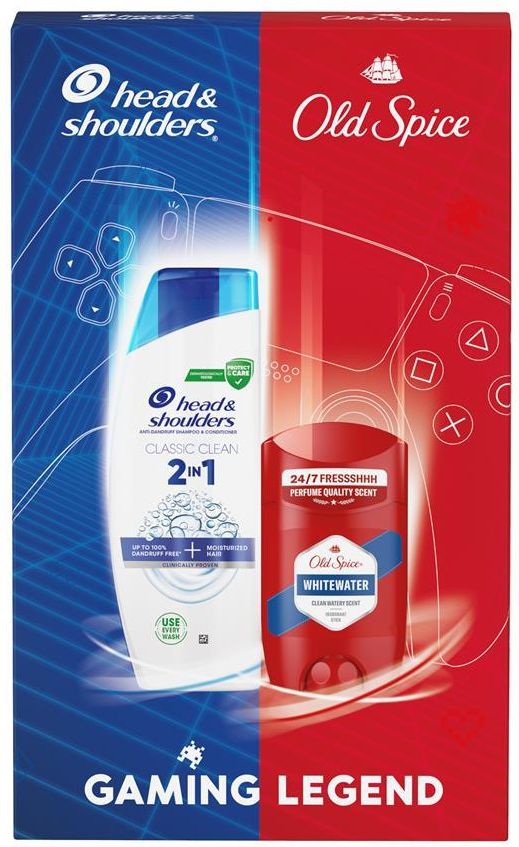 Ciesz się świeżością przez 24 godziny dzięki dezodorantowi Old Spice Whitewater, który skutecznie chroni przed nieprzyjemnym zapachem. W zestawie znajduje się także szampon 2 w 1 Head & Shoulders Classic Clean, który zwalcza łupież i dba o równowagę mikrobiomu skóry głowy. Idealne połączenie dla pewności siebie na co dzień! SKUTECZNE ZAPOBIEGANIE ŁUPIEŻOWI I OCHRONA PRZED NIM. Ochrona przed łupieżem do 100%*, skuteczność potwierdzona klinicznie (* w przypadku widocznych oznak łupieżu, przy regularnym stosowaniu) MIĘKKIE I PIĘKNE WŁOSY. Ten szampon zawiera o 25% więcej składników odżywczych w porównaniu ze zwykłym szamponem Head & Shoulders, dzięki czemu włosy są po umyciu czyste i miękkie POŻEGNAJ SIĘ Z NIEPRZYJEMNYM ZAPACHEM I PRZYGOTUJ SIĘ NA DŁUGOTRWAŁĄ ŚWIEŻOŚĆ: Ciesz się świeżością przez 24 godziny i 7 dni w tygodniu* oraz pachnącą pewnością siebie dzięki dezodorantowi Old Spice w sztyfcie (* przy codziennym stosowaniu) WYPRÓBUJ ZAPACH WHITEWATER O JAKOŚCI PERFUM: Zapach z nutami świeżej wody, drzewa sandałowego, cytrusów i bursztynu sprawi, że Twój urok będzie tak nieodparty jak syreni śpiew