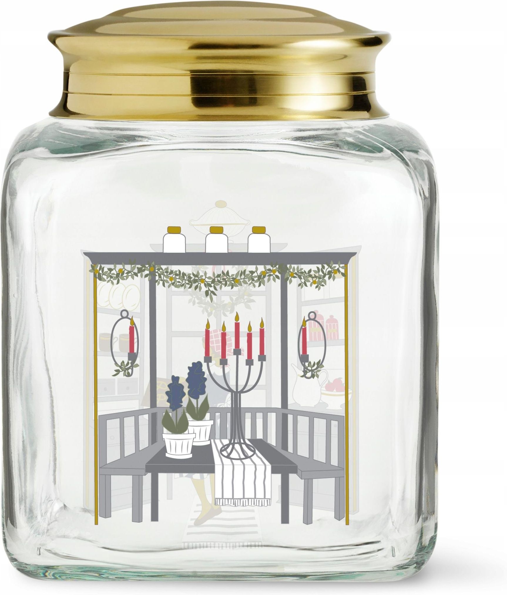 Kolekcja świąteczna Holmegaard to już coroczna tradycja tej duńskiej marki. Jette Frölich inspirowała się swoimi motywami duńskimi świętami Bożego Narodzenia. Ta niezwykle piękna seria składająca się ze szklanej zastawy oraz ozdób, wprowadzi do Twojego domu jeszcze więcej magii i atmosfery świąt. Każdy z elementów wykonany został ręcznie z najwyższej jakości szkła. Zdobienia nawiązujące do bożonarodzeniowych tradycji Skandynawii, nadają im niepowtarzalnego charakteru. Słój z pokrywką do ciasteczek, wymiary: wysokość 16 cm, podstawa 12 x 12 cm. Wykonanie: szkło, metal.
