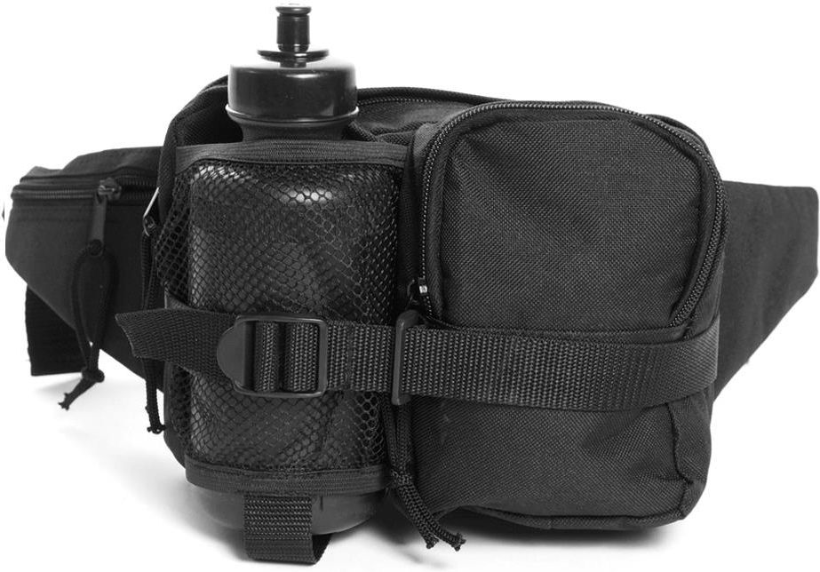 100% poliester pokryty polichlorkiem winylu Butelka plastikowa (1 litr) - 1 duża kieszeń główna - 1 kieszeń z boku na zamek błyskawiczny - w tym butelka sportowa - regulowany pasek na długość