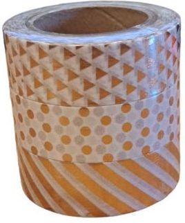 - zestaw taśm dekoracyjnych, papierowych - zawiera: 3 sztuki w różnych wzorach - kolory: złoty - długość jednej taśmy: 10 m - przeznaczone do scrapbookingu i dekoracji