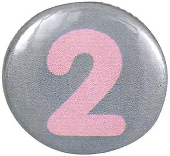 - przypinka - wzór: cyfra "2" - wymiary: 2,5 cm - kolorystyka: szary, różowy