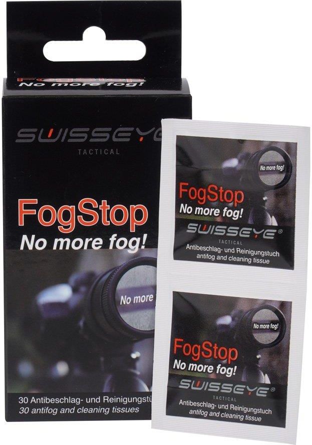 Chusteczki do czyszczenia soczewek od firmy Swiss Eye. Chusteczki zapobiegają parowaniu dzięki środkowi Fog Stop, którym są nasączone. Chusteczkami skutecznie można czyścić okulary, gogle, lunety, lornetki i obiektywy w aparatach fotograficznych. Powłoka Fog Stop utrzymuje się do 24 godzin i oprócz przeciwdziałania parowaniu posiada właściwości antystatyczne. Sztuk w opakowaniu: 30 chusteczek (każda pakowana oddzielnie)