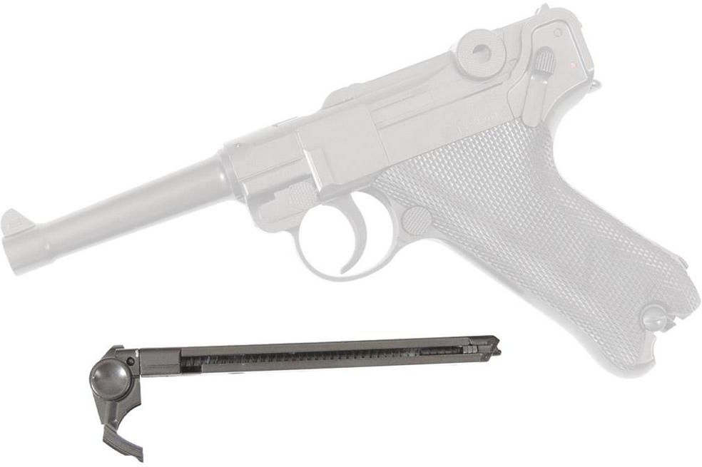 Mieszczący stalowych 21 śrucin okrągłych kaliber 4,46 mm (tzw. BB) magazynek do pistoletu Luger P08 serii "Legends" znanego niemieckiego producenta - firmy Umarex. Istniejąca od kilku lat seria replik LEGENDS jest ciągle poszerzana o nowe modele broni historycznej. Miłośnicy starej szkoły konstrukcji broni, kolekcjonerzy i militaryści mają zatem coraz szerszy wybór jeśli chodzi o strzelające repliki sięgające rodowodem do początków XX wieku, a nawet wcześniej. Śledząc bogatą historię tych pistoletów można się przenieść w czasy pionierskich konstruktorów i poznać zawirowania wojenne i związane z nimi zagadnienia historii oręża. Pistolety te będą niewątpliwie ozdobą każdej kolekcji.