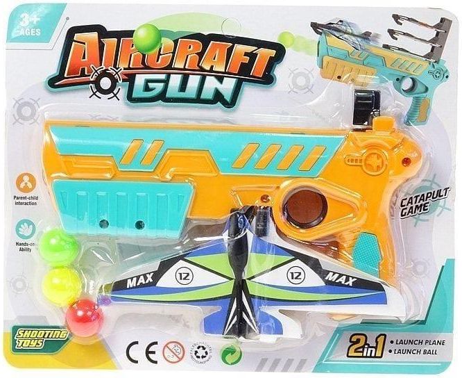 pistolet na piłeczki piankowe; z wyrzutnią samolotów 23x8,5x4cm, B/C Uwaga, wysyłamy jeden z dostępnych wzorów produktu.