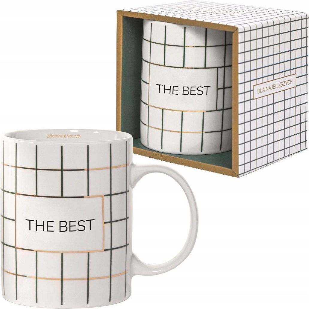 KUBEK Z NAPISEM NA PREZENT DLA NIEGO Specjalny grawer: THE BEST Materiał: wysokiej jakości porcelana Wymiary: 110 x 115 mm Pojemność: 350 ml Kolor: biało-zielony Nie zaleca się mycia w zmywarce KUBEK WYSYŁANY JEST W PREZENTOWYM PUDEŁKU WIDOCZNYM NA ZDJĘCIU UNIKALNA KOLEKCJA HARMONIA KOLORÓW WYSOKIEJ JAKOŚCI CERAMIKA BARDZO TRWAŁY NADRUK I WZÓR GRAWER WEWNĄTRZ: ZDOBYWAJ SZCZYTY POJEMNOŚĆ: 350 ML KUBEK NA PEWNO ZOSTANIE ULUBIONYM TOWARZYSZEM DO KAWY OSOBIE KTÓREJ GO PODARUJESZ. WYRÓŻNIA GO WYSOKA JAKOŚĆ WYKONANIA Z DBAŁOŚCIĄ O KAŻDY, NAWET NAJMNIEJSZY DETAL. KUBEK Z NAPISEM DEDYKOWANY DLA CHŁOPAKA, DLA MĘŻA, DLA NARZECZONEGO, DLA KOLEGI, DLA PRZYJACIELA, DLA TATY, DLA DZIADKA, DLA BRATA, DLA SZWAGRA, DLA KUZYNA PREZENT NA TAKIE OKAZJE JAK NA DZIEŃ CHŁOPAKA, NA DZIEŃ MĘŻCZYZNY, NA DZIEŃ TATY, NA DZIEŃ DZIADKA, NA URODZINY, NA IMIENINY, NA ŚWIĘTO BOŻEGO NARODZENIA, NA WIELKANOC