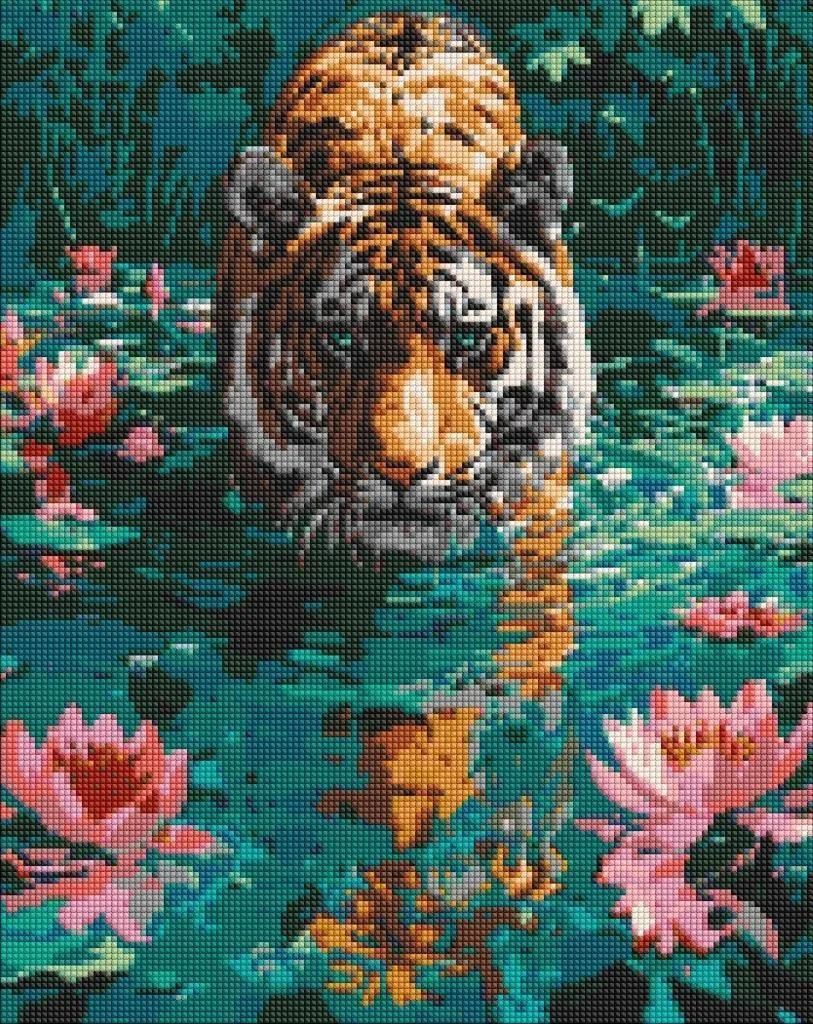 Diamentowa Mozaika Tygrys Na Polowaniu 40X50Cm Pobiedziska