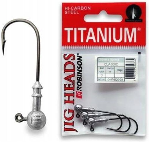 Główki jigowe r.4/0 22g Robinson Nowe wzory miękkich przynęt i ich różnorodność spowodowały zdecydowanie większe zainteresowanie spinningistów używaniem jigów. Główki jigowe Titanium mają wzmocniony, kuty i wydłużony hak, dzięki czemu można jigować bardzo długimi przynętami. Hak Titanium charakteryzuje się sprężystością i wytrzymałością, a dzięki zastosowaniu długiego ostrza typu Needle Point jest piekielnie ostry. Przedłużony grot powoduje pewne zacięcie ryby, a mikrozadzior nie kaleczy ryby. Dopracowane są proporcje główki, kołnierza i wielkości haka. Główki są wyprodukowane ze specjalnie utwardzonego ołowiu, a haki z wysokogatunkowej stali. Całość wyróżnia się precyzją wykonania. Na skandynawskich testach główki okazały się bardzo łownymi, a ich moc była niezawodna w czasie holu wielkich drapieżników. Parametry Rozmiar: 4/0 Waga: 22g