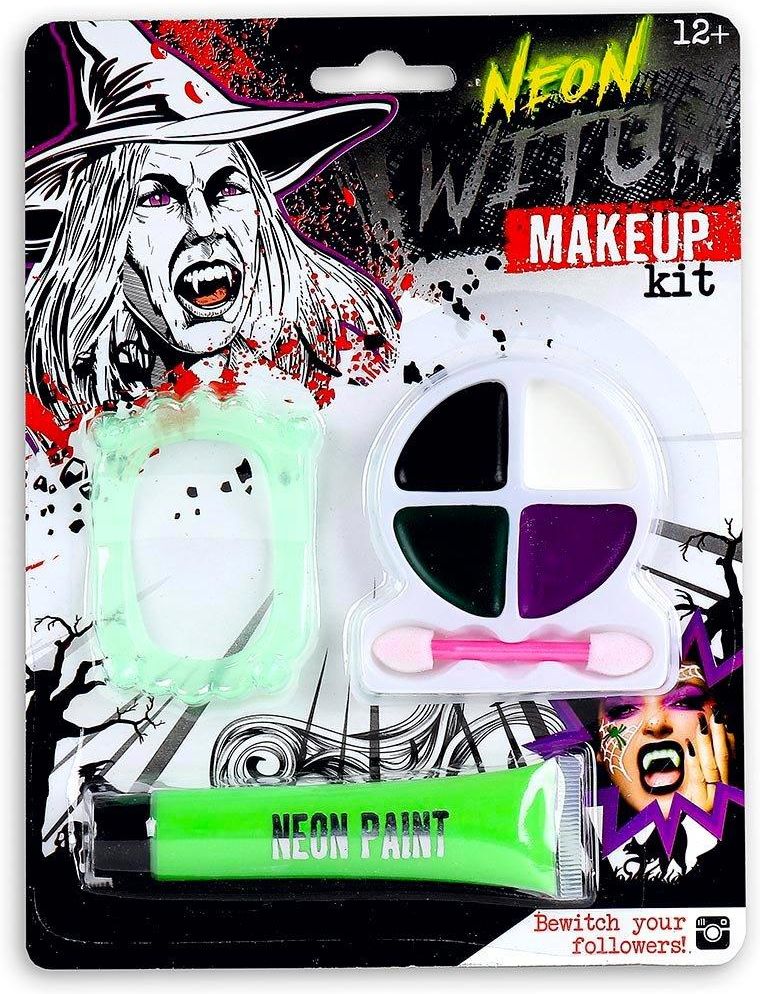 - zestaw do makijażu, Wiedźma - zawiera: cztery farby do twarzy, tubkę neonowej farby, sztuczne zęby, aplikatoR